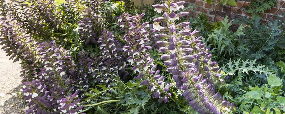 - Acanthus Spinosus: This plant grows erect spikes of snapdragon-like white flowers with spiny purplish bracts and spine-tipped, dark green leaves. Its attractive foliage will keep your garden looking lush throughout the growing season while its flowers bloom in late spring and summer.