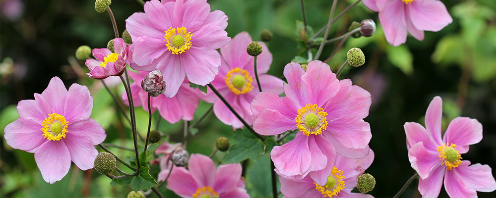- Japanese Anemone: These beautiful flowers can be planted in the fall for spring blooms or in the spring for summer blooms, depending on your geographical location. They are upright, clump-forming, deer resistant perennials, which come in a broad range of colors. They are one of the rare plants that come in a true blue as well as purples, whites, and reds. These pollinators are very shade tolerant and will add some amazing color to your garden.