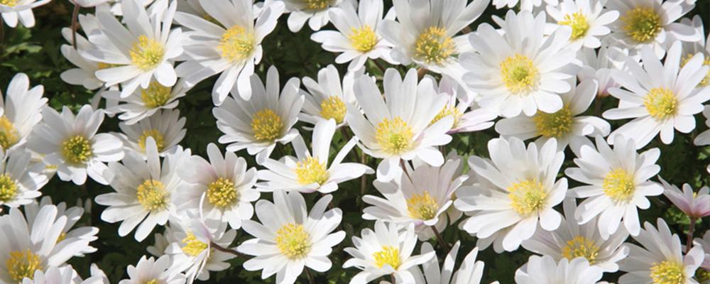 Anemones are such cheery little flowers, filling rock gardens and flower beds with delicate fern-like foliage and pretty petals that remind us of daisies. I tend to gravitate toward the Blanda cultivars, which have a wider winter-hardiness range. For a sea of white blooms in mid-spring, I recommend White Splendour, an especially hardy cultivar that pollinators love! Their soft features and crisp color pairs perfectly with anything. 3”-4” tall, winter-hardy to zones 5-8.