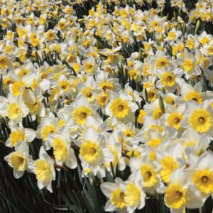 "One flower to a stem; corona or cup more than one-third but less than equal to the length of the perianth segments or petals." The group that you see the most often used in gardens; perfect for perennializing, picking, forcing and showing; some of the showiest daffodils are in this division and are the ones that give you more ‘bang for your landscape buck’! 14/16 cm bulbs unless otherwise noted; 4-5 per sq. ft; whz 3–8.