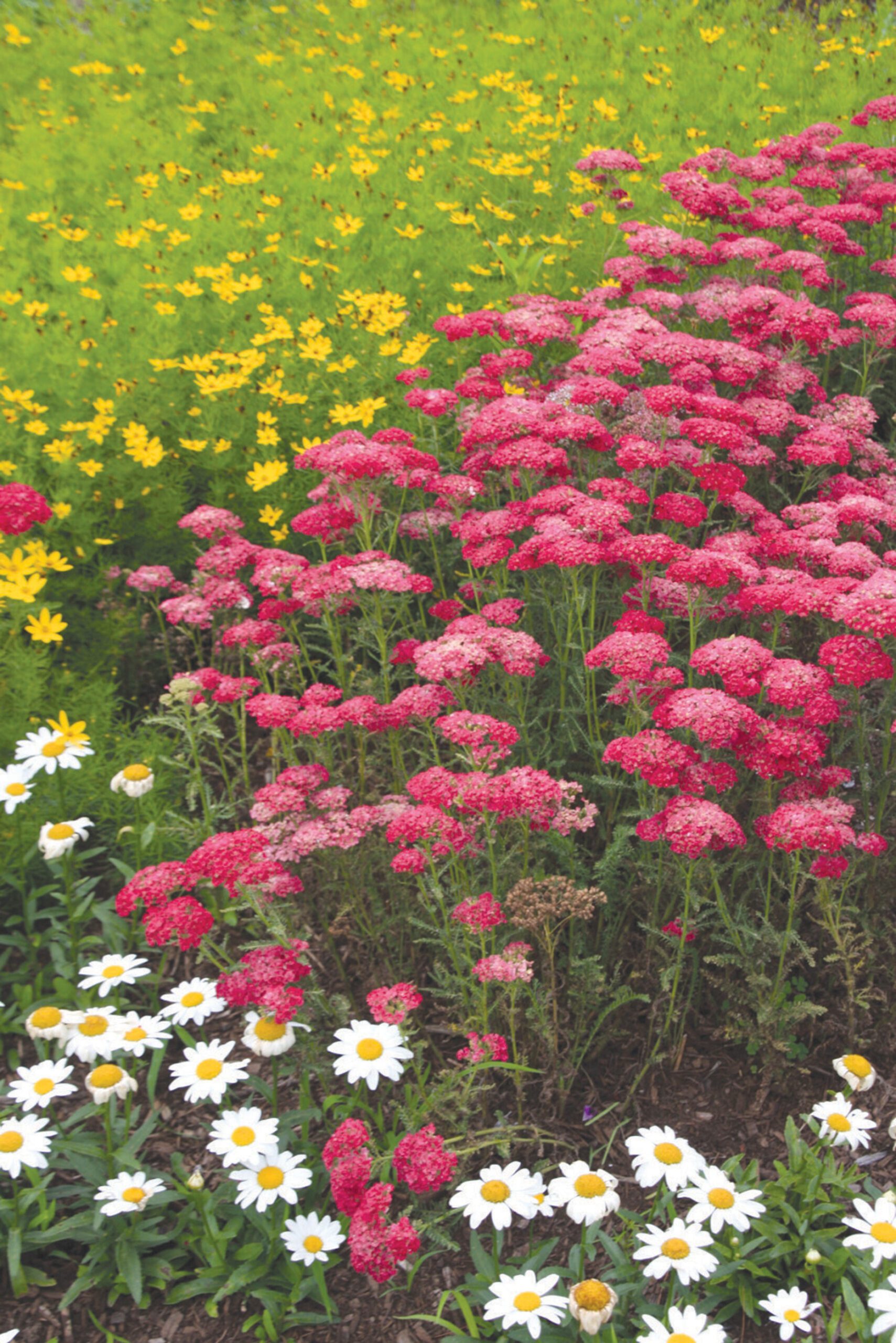 Fern-like, fragrant, green to gray foliage topped with clusters of tiny, colorful flowers that pollinators adore. The flowers not only add color to our garden from late spring through early fall, they are also wonderful in fresh or dried arrangements. Achillea prefers full sun and well-drained soil. Deadhead spent blooms to encourage more flowers to grow. Will spread by rhizomes, so divide every 3 to 5 years. Heat and humidity tolerant, drought tolerant once established. Deer and rabbit resistant.