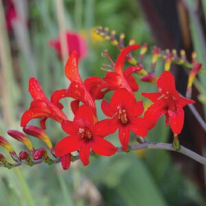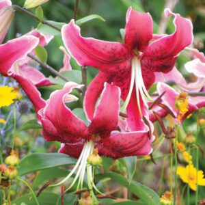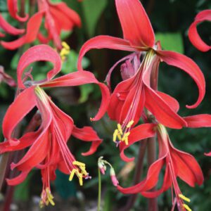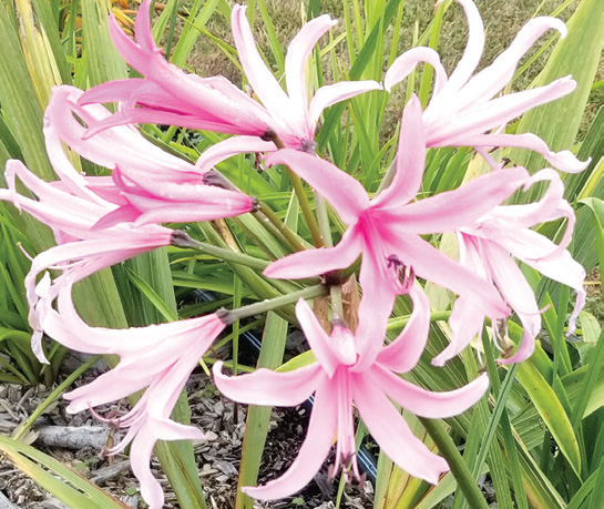 A cross between Amaryllis belladonna and Nerine bowdenii originally produced for the cut flower trade; blooms earlier than Nerine and keeps its foliage; long-lasting in the garden and in containers; critter proof.