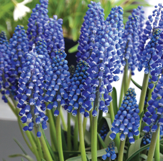 Spikes covered with grape-like, long-lasting blooms in a range of blues and whites; great as an edging or 'shoes and socks' plant, for forcing or for designing a 'river'; fragrance reminiscent of grapes; naturalizes; armeniacum-types send up foliage in the fall which makes it a great 'garden marker' to help locate other, more difficult to find, spring flowering bulbs that need to be fertilized in the fall; critter resistant; Heirloom; 9/10 cm bulbs unless otherwise noted; whz 4-9.