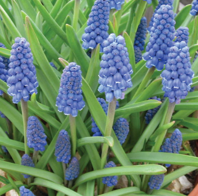 Spikes covered with grape-like, long-lasting blooms in a range of blues and whites; great as an edging or 'shoes and socks' plant, for forcing or for designing a 'river'; fragrance reminiscent of grapes; naturalizes; armeniacum-types send up foliage in the fall which makes it a great 'garden marker' to help locate other, more difficult to find, spring flowering bulbs that need to be fertilized in the fall; critter resistant; Heirloom; 9/10 cm bulbs unless otherwise noted; whz 4-9.