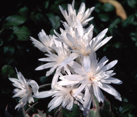 Large, white, double flowers; mid fall; 4′-6″; 1872.