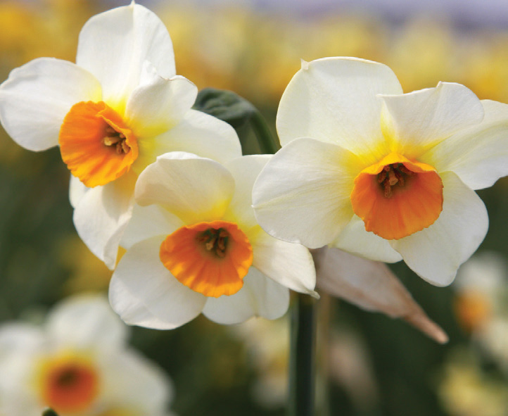 Daffodils are the most cost effective, pest-free, long-term perennial plants available and make wonderful companions with other bulbs, perennials, annuals and flowering shrubs. They grow in almost all areas of the United States as long as there is a discernible winter. They are pest-free and when given ample sunlight, water and proper nutrition, will provide early spring color for many years. They are divided into 13 divisions according to their flower shape and heritage, and we have put the American Daffodil Society’s descriptions in quotes (“ “) and caps at the beginning of each division. Daffodils should be planted in full sun or at least ½ day (8 hours) of direct sunlight after the leaves are on the trees and should be planted 3× the height of their bulb deep (3”–8”) in compost enriched soil. Daffodils are wonderful flowers to pick for arrangements.