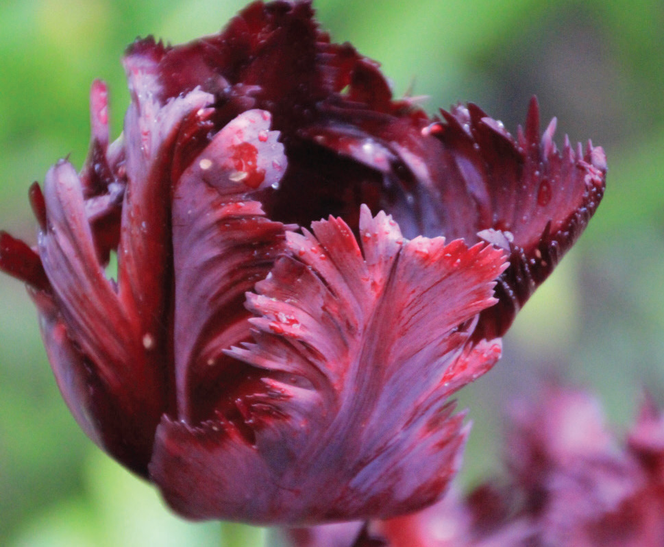 Very dark burgundy Heirloom with almost black flames and edges; great for adding shadows to a sunny border; 1937; 16″-18″; late spring.