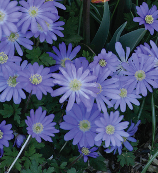 Daisy-like flowers with fernlike foliage that are great for rock gardens, forcing and are terrific ‘shoes and socks’ plants for larger bulbs and perennials; a spring ephemeral groundcover; soak overnight before planting and plant shallow on edge; full sun to mid-shade; Heirloom 1700; Mar.-Apr.; 3”–4”; whz 5–8; 10-15 per sq. ft.; tubers are 5/+ cm unless noted otherwise.