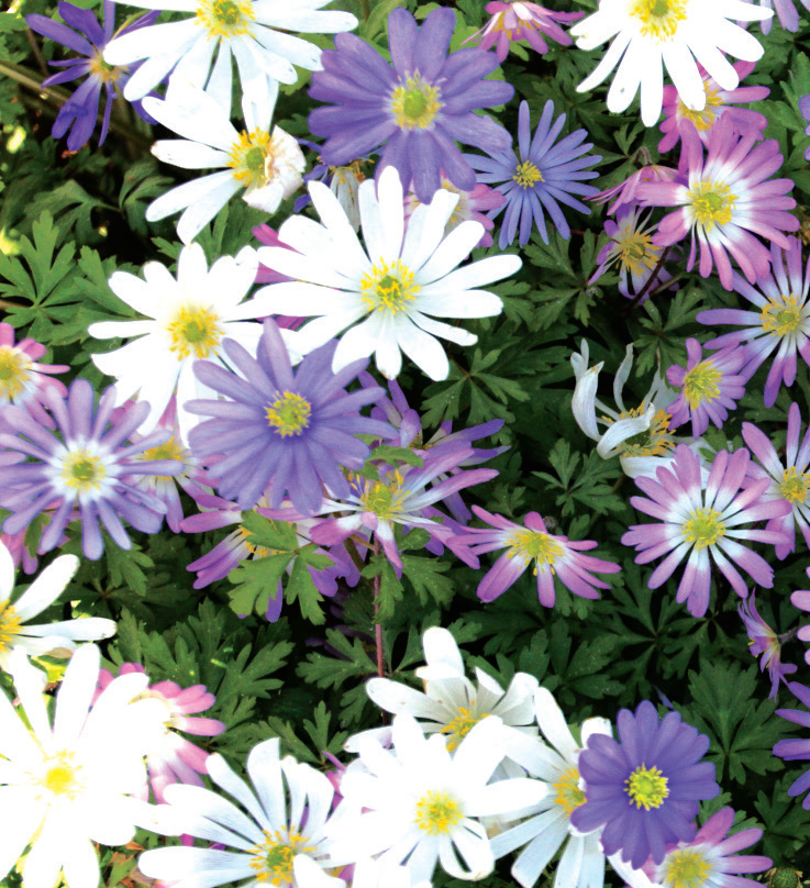 Daisy-like flowers with fernlike foliage that are great for rock gardens, forcing and are terrific ‘shoes and socks’ plants for larger bulbs and perennials; a spring ephemeral groundcover; soak overnight before planting and plant shallow on edge; full sun to mid-shade; Heirloom 1700; Mar.-Apr.; 3”–4”; whz 5–8; 10-15 per sq. ft.; tubers are 5/+ cm unless noted otherwise.