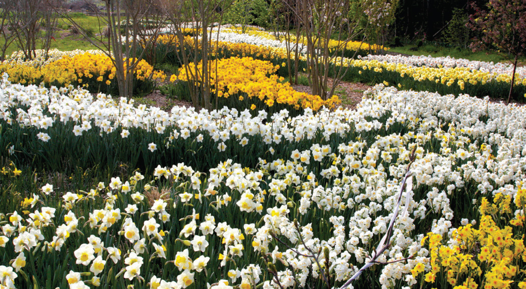 Daffodils are the most cost effective, pest-free, long-term perennial plants available and make wonderful companions with other bulbs, perennials, annuals and flowering shrubs. They grow in almost all areas of the United States as long as there is a discernible winter. They are pest-free and when given ample sunlight, water and proper nutrition, will provide early spring color for many years. They are divided into 13 divisions according to their flower shape and heritage, and we have put the American Daffodil Society’s descriptions in quotes (“ “) and caps at the beginning of each division. Daffodils should be planted in full sun or at least ½ day (8 hours) of direct sunlight after the leaves are on the trees and should be planted 3× the height of their bulb deep (3”–8”) in compost enriched soil. Daffodils are wonderful flowers to pick for arrangements.