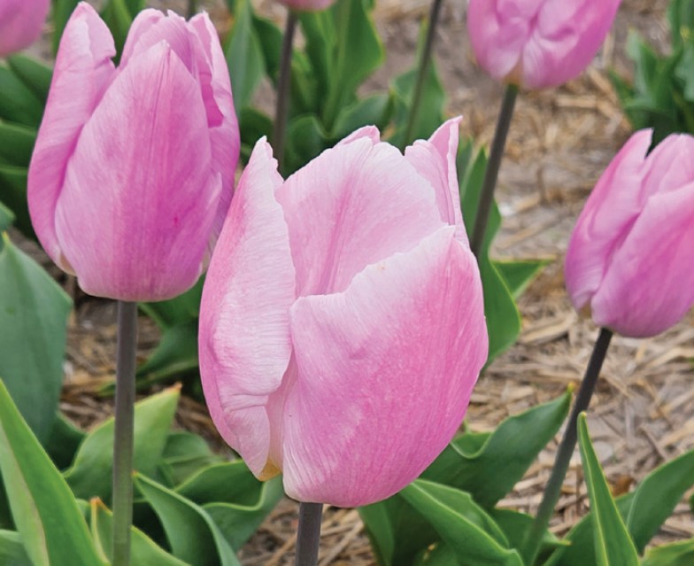The peacocks and parrots of the bulb world, tulips offer more sizes, shapes and colors than you can imagine for any type of garden design scheme. They are an incredible source of inexpensive color for the garden. Almost every color in the spectrum is available except true blue. Intensity of the colors sometimes varies according to climate and even from one season to another. Divided into 15 divisions usually depending on shape, bloom time or heritage. The explanation and description of each division is found in quotes (" ") and in caps on the following pages and was taken directly from the Royal General Bulbgrowers' Association's 1996 publication of the Classified List and International Register of Tulip Names, Johan van Scheepen, editor. Plant 4 × their height deep (8"–10" for regular sized tulips; 4"–6" for small tulips); bulbs are 12/+cm unless otherwise noted.