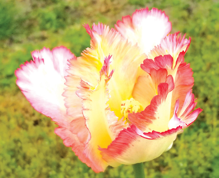 Parrot Tulips"Single flowered cultivars with laciniate, curled and twisted tepals. Mainly late flowering. Stem of variable length." A flower arranger’s dream, these birdlike flowers are often scalloped and heavily fringed; flowerheads can be heavier, so give protection from wind and harsh weather; often seen in European floral paintings; whz 3–8; mid-late spring and 12/+ cm unless otherwise noted.