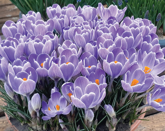 Six petaled, cup–shaped flowers with grasslike foliage that come in a myriad of colors; early blooming and great for rock gardens, forcing and for designs in the late winter or early spring lawns; whz 3–8; 3"–6"; 6/7 cm bulbs unless noted otherwise.