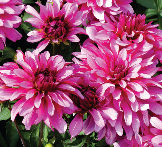 Cute, compact and loaded with flowers; dark purple centers with lighter fuschia-lilac petals; dark green leaves; 12″-18″.