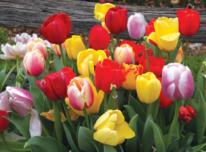 The peacocks and parrots of the bulb world, tulips offer more sizes, shapes and colors than you can imagine for any type of garden design scheme. They are an incredible source of inexpensive color for the garden. Almost every color in the spectrum is available except true blue. Intensity of the colors sometimes varies according to climate and even from one season to another. Divided into 15 divisions usually depending on shape, bloom time or heritage. The explanation and description of each division is found in quotes (" ") and in caps on the following pages and was taken directly from the Royal General Bulbgrowers' Association's 1996 publication of the Classified List and International Register of Tulip Names, Johan van Scheepen, editor. Plant 4 × their height deep (8"–10" for regular sized tulips; 4"–6" for small tulips); bulbs are 12/+cm unless otherwise noted.