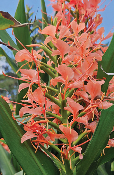 Native to tropical Asia, Himalaya and Madagascar, these plants produce spectacular 12" tall flower heads that crown 3'-5' stems in late summer attracting many hummingbirds and butterflies. Each flower has 20-100 of 2" individual, variable fragranced, colorful blossoms. Tolerant of heavy wet soils, their normal habitat is the edge of the forest where there is plenty of light and lots of moisture. Blooms late summer until frost; may not bloom the first year and needs a long growing season, so if they are not hardy for you, it would be best to pot them up in at least a 15" pot.
