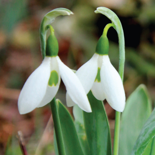 Lovely, nodding, fragrant flowers; 3-lobed, bell–shaped, clear white outer segments, inner segments resemble a corona, often green-tipped; bloom here in the late fall, throughout the winter and into spring; narrow, upright, linear, glaucous foliage; good for rock gardens and woodlands; performs best in shade in rich soil; critter proof; naturalizes in good conditons;10 per sq. ft.; 6/+ cm unless otherwise noted; whz 3–8.