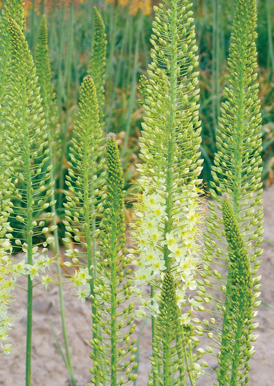 Tall spikes of tons of starry florets; extremely showy and eye-catching; for a sunny, very well drained border or dry meadow; protection from strong winds helpful; make excellent cut flowers; very late spring or early summer; whz 5–8; (top-sized).
