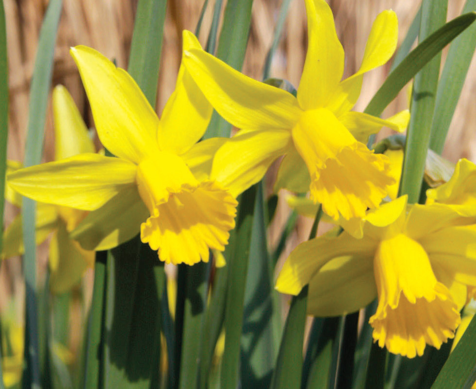Daffodils are the most cost effective, pest-free, long-term perennial plants available and make wonderful companions with other bulbs, perennials, annuals and flowering shrubs. They grow in almost all areas of the United States as long as there is a discernible winter. They are pest-free and when given ample sunlight, water and proper nutrition, will provide early spring color for many years. They are divided into 13 divisions according to their flower shape and heritage, and we have put the American Daffodil Society’s descriptions in quotes (“ “) and caps at the beginning of each division. Daffodils should be planted in full sun or at least ½ day (8 hours) of direct sunlight after the leaves are on the trees and should be planted 3× the height of their bulb deep (3”–8”) in compost enriched soil. Daffodils are wonderful flowers to pick for arrangements.