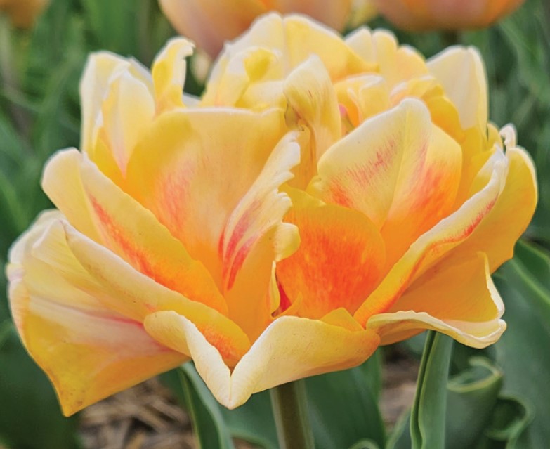 Shades of apricot, yellow, peach, and orange glow from this double flower; colors change as the flower matures; great in the garden, containers and arrangements; 12″-14″; early-mid spring.