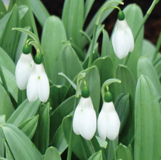 Lovely, nodding, fragrant flowers; 3-lobed, bell–shaped, clear white outer segments, inner segments resemble a corona, often green-tipped; bloom here in the late fall, throughout the winter and into spring; narrow, upright, linear, glaucous foliage; good for rock gardens and woodlands; performs best in shade in rich soil; critter proof; naturalizes in good conditons;10 per sq. ft.; 6/+ cm unless otherwise noted; whz 3–8.