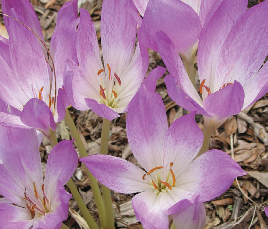 Often misnamed ‘Autumn Crocus’, cup-shaped flowers on naked stems; poisonous and tastes bad to critters that may be tempted to eat them; flowers appear in the fall and foliage, which resembles hosta leaves, appear in the spring; prefers rich, well drained soil and partial shade to full sun; many are species and are variable in their color and growth habit. Bloom mid-late fall; can bloom without being planted in soil; 3 per sq. ft; whz 4–8; 13/+ cm unless otherwise noted. Colchicum are long term perennial bulbs that get better each year.