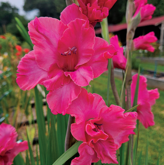 An old-fashioned flower originally from Africa, that has reclaimed its place in the flower border and as a cut flower. Colorful blossoms alternating up tall stems, come in a myriad of colors, and offer linear structure to the back of the garden. Glads prefer full sun, well drained soil and sometimes need to be planted deeply to keep them from falling over. They often stand up nicely when planted deeply or when grown with other strong, sturdy plants like Dahlias that act as a trellis for them. Plant at one to two week intervals to extend bloom season; top sized corms. Standard varieties 18”-36” and smaller varieties 12”-24”; 14/+cm bulbs unless otherwise noted; whz 8-10; (7b when we plant deeper and mulch); attracts butterflies and hummingbirds; deer and rabbit tolerant.