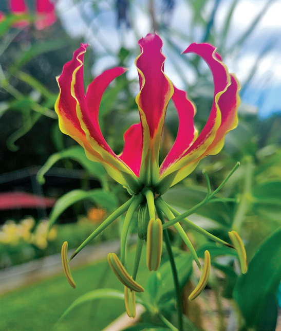 Asia, has extremely reflexed petals that reveal prominent, long ‘eyelash’ pistils and stamens. Leaves cling to arbors, trellises or strong-stemmed neighbors with the aid of curly tendrils at its leaf tips; requires full sun and well-drained soil; 1 per sq. ft.; 15/20 cm; whz 8-10, but will overwinter in whz 7 in a protected location with extra mulch and well-drained soil; blooms mid-late summer; grows up to 6'; heirloom 1902, variable.