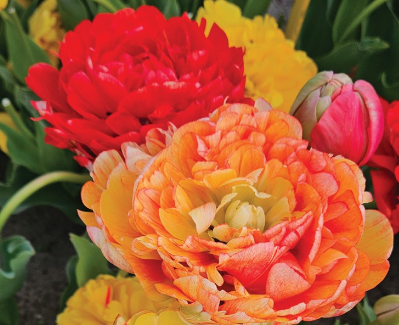 Double Late Tulips"Double flowered cultivars; Late flowering. Mainly long stemmed." Rose or peony shaped flowers that provide a lot of focal impact in the late spring garden; good for protected bedding and cut flowers; 5 per sq. ft; whz 3-8; 12/+ cm unless otherwise noted.