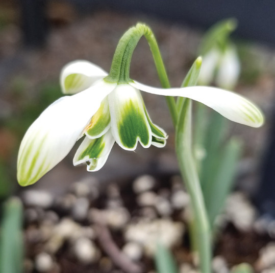 Lovely, nodding, fragrant flowers; 3-lobed, bell–shaped, clear white outer segments, inner segments resemble a corona, often green-tipped; bloom here in the late fall, throughout the winter and into spring; narrow, upright, linear, glaucous foliage; good for rock gardens and woodlands; performs best in shade in rich soil; critter proof; naturalizes in good conditons;10 per sq. ft.; 6/+ cm unless otherwise noted; whz 3–8.