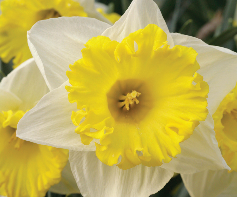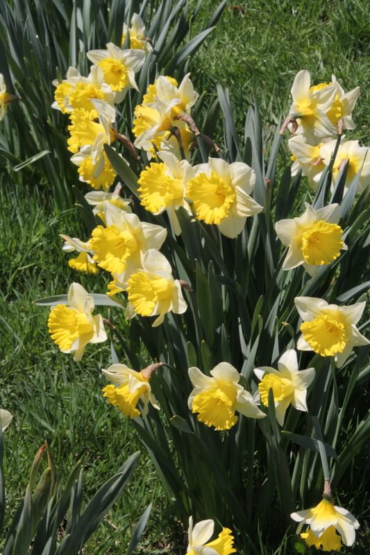 Daffodils are the most cost effective, pest-free, long-term perennial plants available and make wonderful companions with other bulbs, perennials, annuals and flowering shrubs. They grow in almost all areas of the United States as long as there is a discernible winter. They are pest-free and when given ample sunlight, water and proper nutrition, will provide early spring color for many years. They are divided into 13 divisions according to their flower shape and heritage, and we have put the American Daffodil Societyโ€™s descriptions in quotes (โ€œ โ€œ) and caps at the beginning of each division. Daffodils should be planted in full sun or at least ยฝ day (8 hours) of direct sunlight after the leaves are on the trees and should be planted 3ร— the height of their bulb deep (3โ€โ€“8โ€) in compost enriched soil. Daffodils are wonderful flowers to pick for arrangements.