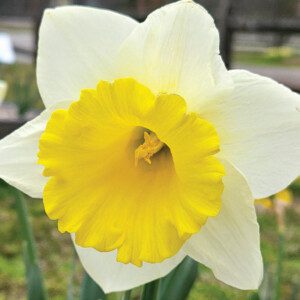 Giant, upfacing flower with creamy petals and buttercup yellow cup; draws as much attention as any ‘Las Vegas showgirl’; great landscape perennial; 18″-20″; early-mid spring; 12/14cm.