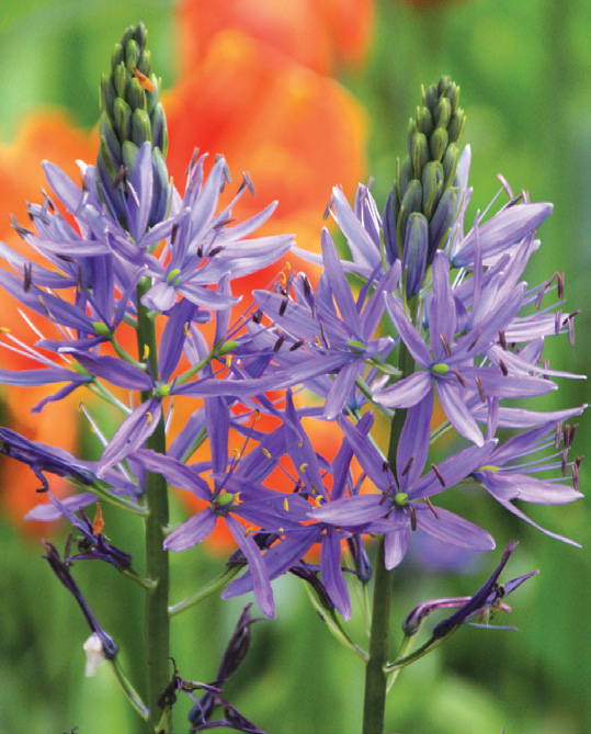 Tall spikes of starry flowers with long, upright swordlike leaves; native to the western Sierra/Nevada meadows, it was sometimes used by the Native Americans as a food crop; tolerates damp meadows and pond edges as well as heavy clay soils; full sun; late spring to early summer; 4-5 per sq. ft. unless otherwise noted; 14/+ cm unless otherwise noted; whz 3–8.
