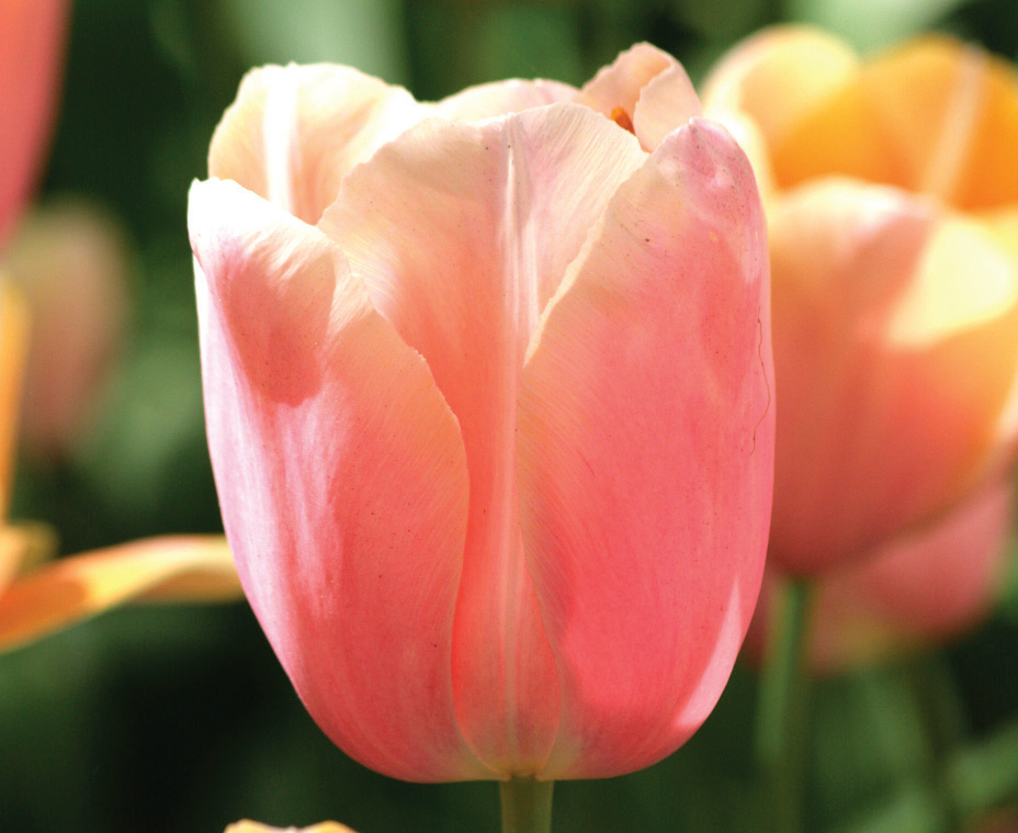The peacocks and parrots of the bulb world, tulips offer more sizes, shapes and colors than you can imagine for any type of garden design scheme. They are an incredible source of inexpensive color for the garden. Almost every color in the spectrum is available except true blue. Intensity of the colors sometimes varies according to climate and even from one season to another. Divided into 15 divisions usually depending on shape, bloom time or heritage. The explanation and description of each division is found in quotes (" ") and in caps on the following pages and was taken directly from the Royal General Bulbgrowers' Association's 1996 publication of the Classified List and International Register of Tulip Names, Johan van Scheepen, editor. Plant 4 × their height deep (8"–10" for regular sized tulips; 4"–6" for small tulips); bulbs are 12/+cm unless otherwise noted.