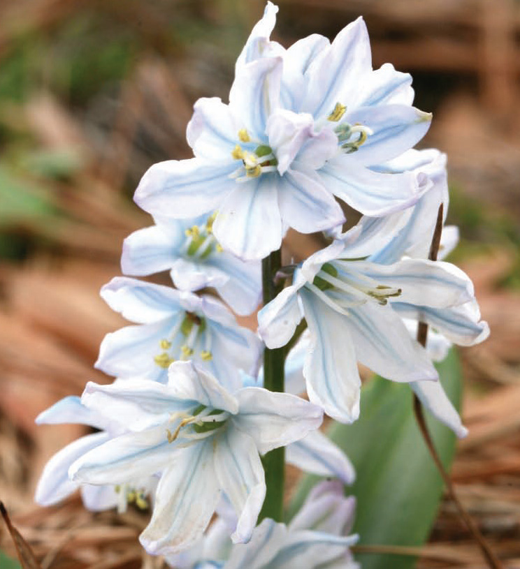 Pest resistant, starry flowers with bell-like blooms on spikes with strap-like leaves; colors range in blues, whites, pinks and violets; heights and bloom times also cover a wide range; one of the most shade tolerant bulbs; most are hardy in whz 4–8; early-mid spring blooming; Heirloom.