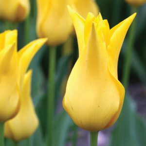 Division 6, cyclamineus; bright yellow reflexed petals and a long cylindrical, slightly flared cup; whz 4-9; 4″-8″; very early spring;8/+ cm.