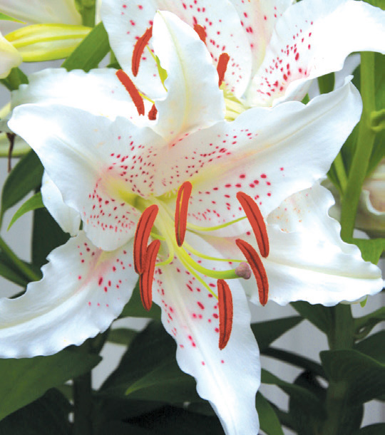 (Oriental) ‘drop-dead gorgeous’ blushing flower with dainty freckles; fragrant; 3′; mid summer.