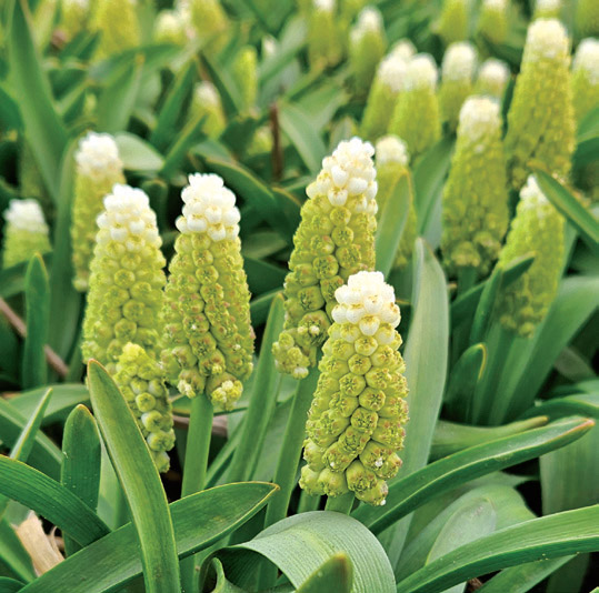 Spikes covered with grape-like, long-lasting blooms in a range of blues and whites; great as an edging or 'shoes and socks' plant, for forcing or for designing a 'river'; fragrance reminiscent of grapes; naturalizes; armeniacum-types send up foliage in the fall which makes it a great 'garden marker' to help locate other, more difficult to find, spring flowering bulbs that need to be fertilized in the fall; critter resistant; Heirloom; 9/10 cm bulbs unless otherwise noted; whz 4-9.