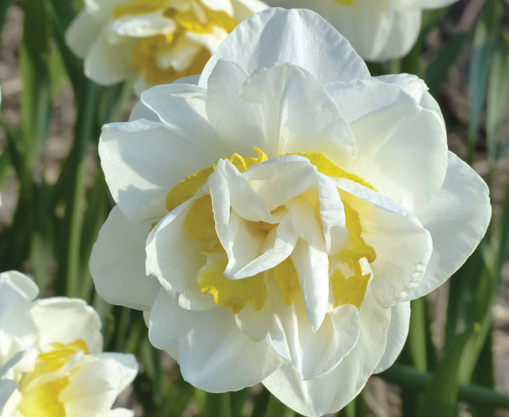 Daffodils are the most cost effective, pest-free, long-term perennial plants available and make wonderful companions with other bulbs, perennials, annuals and flowering shrubs. They grow in almost all areas of the United States as long as there is a discernible winter. They are pest-free and when given ample sunlight, water and proper nutrition, will provide early spring color for many years. They are divided into 13 divisions according to their flower shape and heritage, and we have put the American Daffodil Society’s descriptions in quotes (“ “) and caps at the beginning of each division. Daffodils should be planted in full sun or at least ½ day (8 hours) of direct sunlight after the leaves are on the trees and should be planted 3× the height of their bulb deep (3”–8”) in compost enriched soil. Daffodils are wonderful flowers to pick for arrangements.