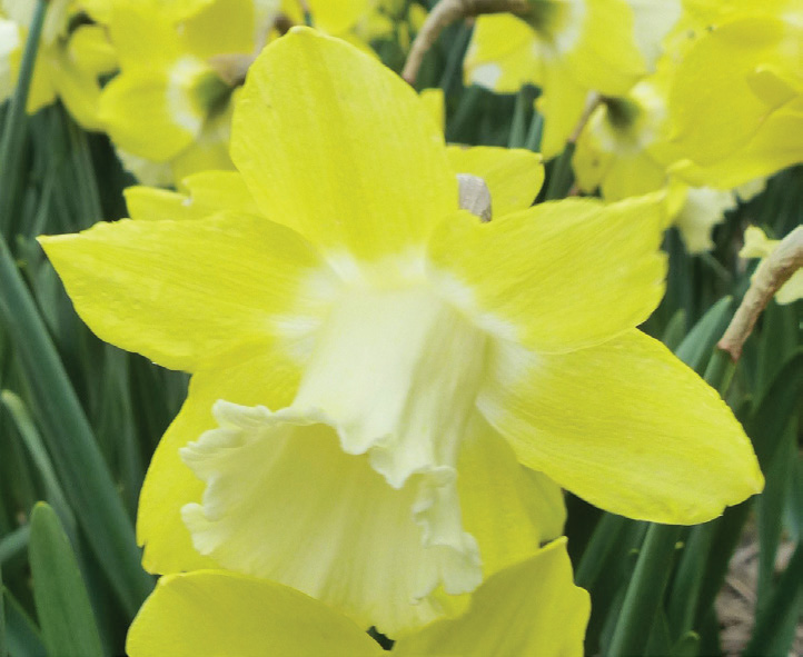 Daffodils are the most cost effective, pest-free, long-term perennial plants available and make wonderful companions with other bulbs, perennials, annuals and flowering shrubs. They grow in almost all areas of the United States as long as there is a discernible winter. They are pest-free and when given ample sunlight, water and proper nutrition, will provide early spring color for many years. They are divided into 13 divisions according to their flower shape and heritage, and we have put the American Daffodil Society’s descriptions in quotes (“ “) and caps at the beginning of each division. Daffodils should be planted in full sun or at least ½ day (8 hours) of direct sunlight after the leaves are on the trees and should be planted 3× the height of their bulb deep (3”–8”) in compost enriched soil. Daffodils are wonderful flowers to pick for arrangements.