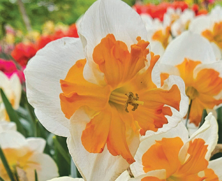 Daffodils are the most cost effective, pest-free, long-term perennial plants available and make wonderful companions with other bulbs, perennials, annuals and flowering shrubs. They grow in almost all areas of the United States as long as there is a discernible winter. They are pest-free and when given ample sunlight, water and proper nutrition, will provide early spring color for many years. They are divided into 13 divisions according to their flower shape and heritage, and we have put the American Daffodil Society’s descriptions in quotes (“ “) and caps at the beginning of each division. Daffodils should be planted in full sun or at least ½ day (8 hours) of direct sunlight after the leaves are on the trees and should be planted 3× the height of their bulb deep (3”–8”) in compost enriched soil. Daffodils are wonderful flowers to pick for arrangements.