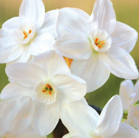 Narcissus Paper WhitesNon-hardy tazetta daffodils, these are the bulbs that can be put in a pot and forced without any cold period...in fact, they should NEVER be put in the refrigerator! If you can’t pot them up as soon as you receive them, store them in a warm, dry place like on top of the refrigerator; 17/+ cm unless otherwise noted; culturally, very easy to grow but their buds may ‘blast’ (never open) if subjected to a too hot and dry environment inside your home; the heights are variable, depending on number of ‘light hours’ given. The fewer hours of light, the taller they will be. (Best rooted at 55–65º; then keep pots 65º with bottom heat (70º+) to ensure bloom).
