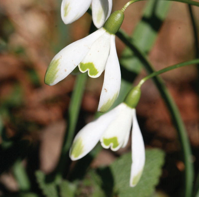 Lovely, nodding, fragrant flowers; 3-lobed, bell–shaped, clear white outer segments, inner segments resemble a corona, often green-tipped; bloom here in the late fall, throughout the winter and into spring; narrow, upright, linear, glaucous foliage; good for rock gardens and woodlands; performs best in shade in rich soil; critter proof; naturalizes in good conditons;10 per sq. ft.; 6/+ cm unless otherwise noted; whz 3–8.