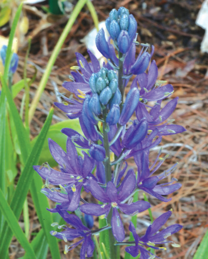Tall spikes of starry flowers with long, upright swordlike leaves; native to the western Sierra/Nevada meadows, it was sometimes used by the Native Americans as a food crop; tolerates damp meadows and pond edges as well as heavy clay soils; full sun; late spring to early summer; 4-5 per sq. ft. unless otherwise noted; 14/+ cm unless otherwise noted; whz 3–8.