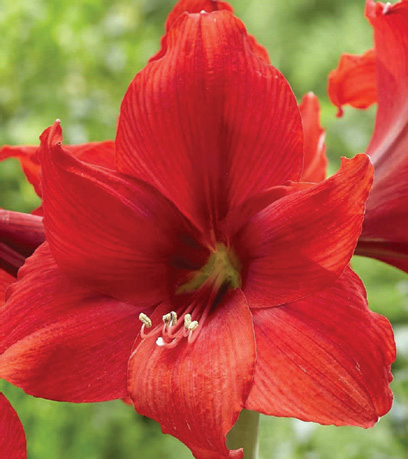 We normally see these as tall, indoor-forced winter plants. However, when grown outdoors in the summer with more intense light and longer daylight hours, they bloom on much shorter stems in early-mid summer. 12”-20” in full sun, taller in part shade; whz 7-10; also in whz 6 in sheltered locations, when planted deep and mulched well; 22/24cm bulbs unless otherwise noted.