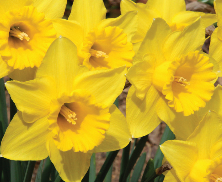 Daffodils are the most cost effective, pest-free, long-term perennial plants available and make wonderful companions with other bulbs, perennials, annuals and flowering shrubs. They grow in almost all areas of the United States as long as there is a discernible winter. They are pest-free and when given ample sunlight, water and proper nutrition, will provide early spring color for many years. They are divided into 13 divisions according to their flower shape and heritage, and we have put the American Daffodil Society’s descriptions in quotes (“ “) and caps at the beginning of each division. Daffodils should be planted in full sun or at least ½ day (8 hours) of direct sunlight after the leaves are on the trees and should be planted 3× the height of their bulb deep (3”–8”) in compost enriched soil. Daffodils are wonderful flowers to pick for arrangements.