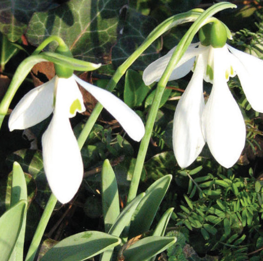 Lovely, nodding, fragrant flowers; 3-lobed, bell–shaped, clear white outer segments, inner segments resemble a corona, often green-tipped; bloom here in the late fall, throughout the winter and into spring; narrow, upright, linear, glaucous foliage; good for rock gardens and woodlands; performs best in shade in rich soil; critter proof; naturalizes in good conditons;10 per sq. ft.; 6/+ cm unless otherwise noted; whz 3–8.
