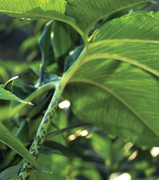 A very unusual, shade tolerant plant that produces a tubular, purplish green flower with dark purple markings which surround a blackish purple central spike. Following the bloom of the flowers, tropical 2’-3’, lovely green leaves emerge on 2’ purple mottled and speckled stems, providing an umbrella for its roots. Native to tropical Africa and Asia, Sauromatums normally produce their flowers in early summer and grow 2’-3’ tall leaves that last all summer long; adds interest in the garden early summer - frost; 22/24cm tubers; 3 per sq. ft.; whz 7-10.
