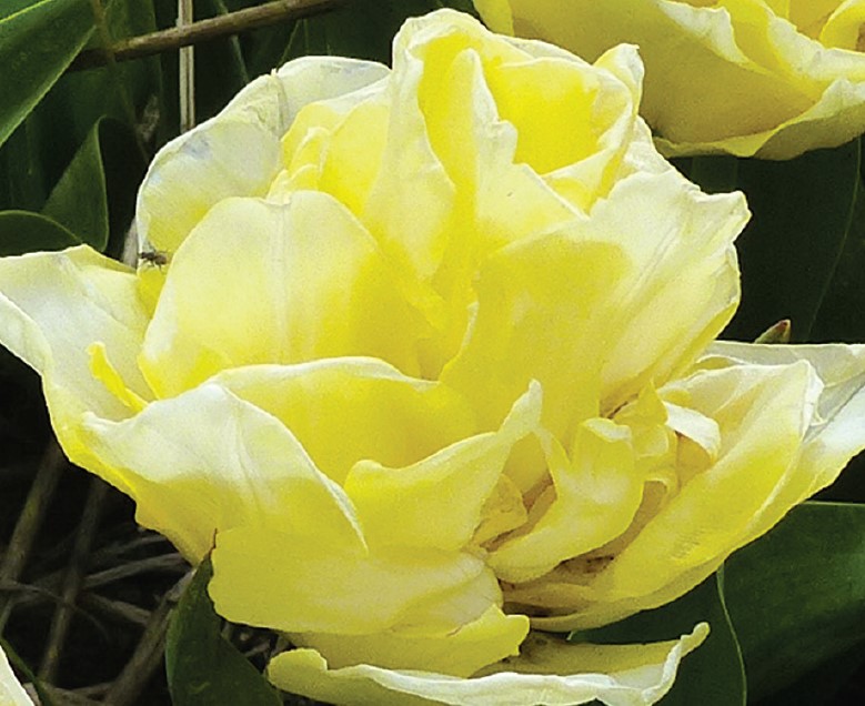 Layers of soft yellow petals with darker yellow edges make up these large, fragrant flowers; 12″-14″; early-mid spring.