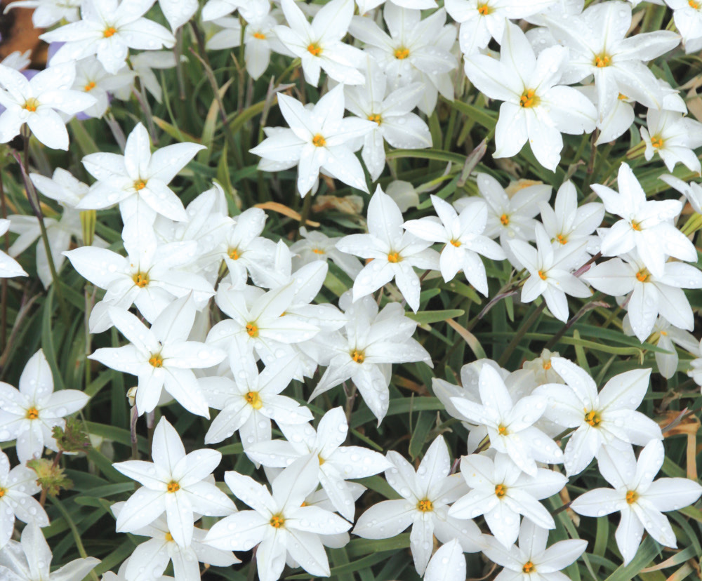 Six petaled, star-shaped, sweetly fragrant flowers with grasslike foliage that smells like garlic when crushed; pest resistant naturalizer; great for edges of borders, lawn art; has naturalized at Colonial Williamsburg and other Heirloom gardens throughout the southeast; long-lasting, early to late spring blossoms; 3"-6" tall; whz 5–9; bulb size 4/+ cm unless noted otherwise.